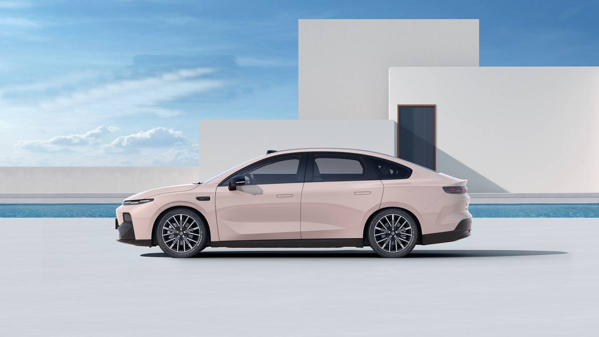 车身侧面,新车溜背式造型搭配简洁的线条,流畅自然,颇具运动感,加上主动进气格栅和车尾的空气动力学鸭尾,打造出0.197Cd的低风阻系数。此外,新车还配备了隐藏式门把手、黑色涂装的外后视镜和B/C柱,以及多辐星芒运动轮毂,大幅提升了车辆的整体美感和运动气质。